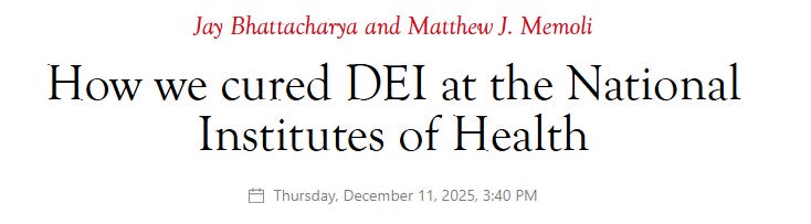 Completely unqualified and inexperienced for the role of NIH Director, Jay Bhattacharya’s tenure has been utterly disastrous. Willfully neglecting his duties to go around podcasting on the taxpayer’s dime, the stain of misogyny has infected what was once the world’s leading hub for medical research. Now, you can’t even get a research grant funded if it dares to mention “women” or “female,” that elusive minority which makes up only half of the population. Pledging to remake the NIH into the “research arm of MAHA,” it’s clear that women’s health is not a priority to the chronic podcaster.
