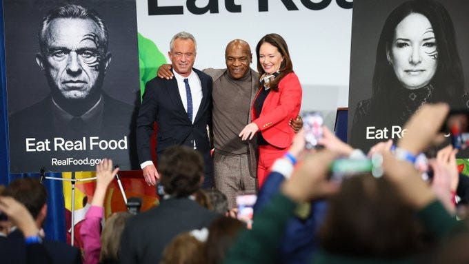 During the 2026 Super Bowl, the Department of Health & Human Services burned millions of taxpayer dollars to unveil a new “Eat Real Food” advertising campaign as part of the “beef & dairy industry federal handout” dietary guidelines endorsed by Thiel-backed Emily Oster, which features a chatbot that generates detailed instructions on how to shove assorted fruit and vegetables up your ass. The mascot for this campaign is the former boxer Mike Tyson, whose career ended after he bit off the ear of a competitor live on pay-per-view. Tyson now sells weed edibles which come in the shape of human ears, making a joke and a quick buck out of his violent sadism.