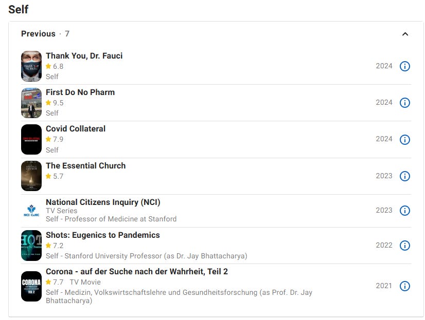 Mr. Bhattacharya would go on to appear on a wide spectrum of media outlets, hosted by a gradient of contrarianism from Max Blumenthal to comedian Jimmy Dore, to insurrectionist Simone Gold, to the infamous Fox News. He also enjoyed pretending to be an "expert" in various conspiracy theory "documentaries." There was no unscientific anti-vaccine myth Mr. Bhattacharya was unafraid to lend the credibility of not only his name, but the prestige of Stanford University to. When called to testify as an "expert" witness in various legal matters, judges of various courts found Mr. Bhattacharya to be dishonest and unreliable. Even with the advantage of a 6-3 conservative majority, Jay Bhattacharya's claims of being a victim of government censorship were soundly laughed out of the halls of the Supreme Court.