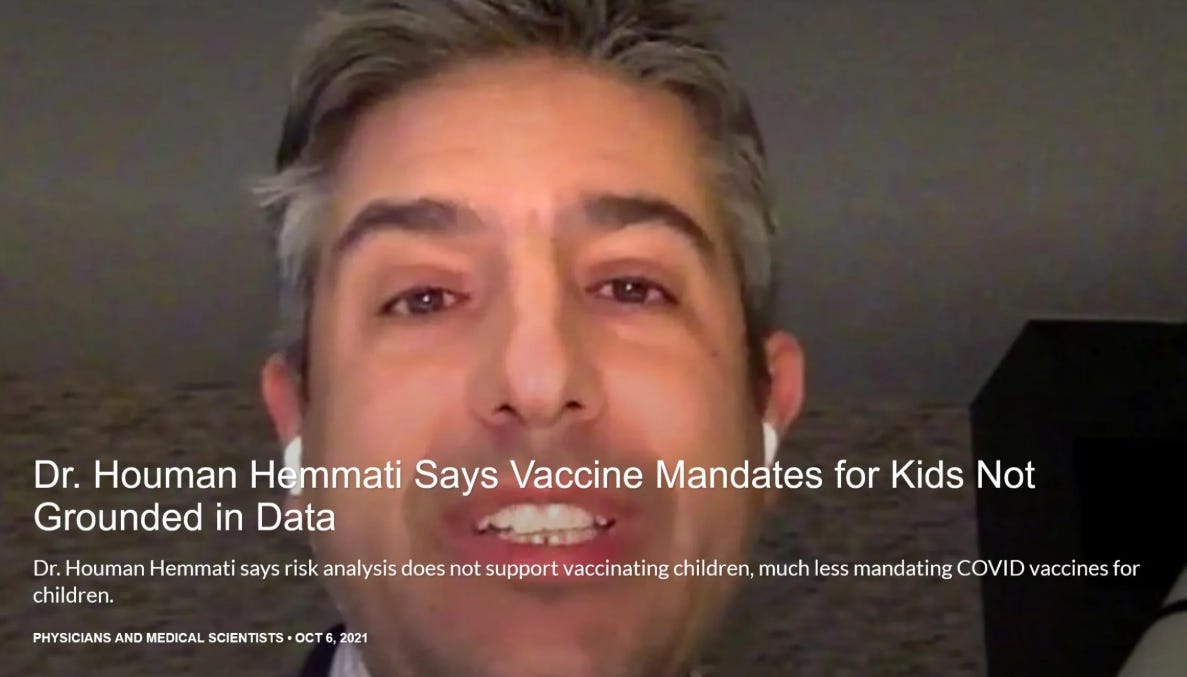 October 6th, 2021: Hemmati got in early on the propaganda grift to sabotage the pandemic response by spreading disinformation and minimizing the virus. Appearing for the “Global COVID Summit,” Houmann Hemmati declares that “risk analysis does not support vaccinating children.” In August of this year, around 500 pediatric COVID-19 deaths were recorded. This number would double to over 1,000 before Christmas 2021. As hundreds of children, overwhelmingly unvaccinated were dying, Hemmati was telling parents that these deaths weren’t worth trying to prevent. This sort of incredibly unethical garbage establishes that Hemmati has no business in any sort of role at the Food & Drug Administration, especially as Director of the Center for Biologics Evaluation & Research.
