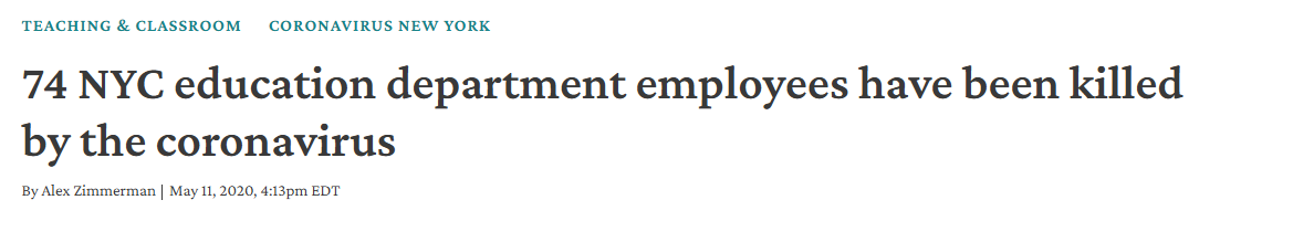 Worse yet, Zweig directly misrepresents an under-supported remote schooling program, which did their best to make exceptions for special needs children, as school "closures." Nobody, especially teachers, were thrilled with conducting classes over Zoom. Yet, the alternative was clearly much worse. Had Zweig gotten his way in 2020, headlines of educators dying en masse in New York City would have been repeated in every major city and led to an additional 850,000 deaths. Just how does that keep schools open & kids learning? Zweig isn’t concerned with this.